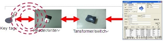 RFID读写器通过天线向外发射射频信号,形成一个读写器的有效识别区域,然后读写器可以对在识别区域内的RFID电子标签发送命令信息或者写入数据。这就是从读写器向电子标签方向的数据传输包含的内容。