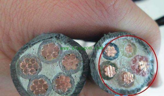 4、导体电阻不合格的电线。导体电阻主要是考核电线电缆的导体材料以及截面是否符合的重要指标。当导体电阻超标时,就增大了电流在线路上通过时的损耗,加剧了电线电缆的发热。导体电阻不合格的原因,主要进企业为了降低成本,将占原材料成本80%的铜材缩水,要么降低导体的截面积,要么使用含杂质过高的再生铜,这样致使电线电缆的导体电阻严重超标,在使用过程中除易引发火灾,还会加速包覆在电线外的绝缘层的老化。