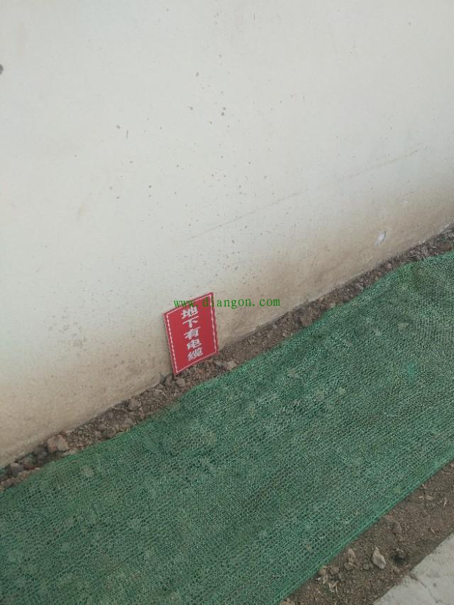 电缆沿围墙埋地敷设,深0.6米,用细沙覆盖,并电缆上方悬挂标识牌。