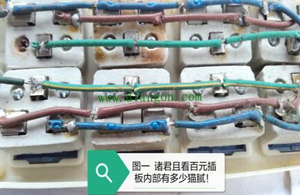 一番查看下来,这只售价百元在同类产品属于中高端的插板,除了内部采用瓷质绝缘基座可取外(恐怕厂家只是利用其来增加配重,给消费者以用料十足的营销手段)的插板彻头彻尾就是一个实足的反面教材大全,看着都让人有一种不寒而栗的感觉!