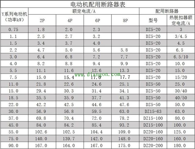应一个朋友所托做了个配电控制柜。他是搞施工的,项目上漏算了个小控制柜,就要我帮忙做个。很简单的三个控制回路。但是又不是很简单。这中间牵扯到怎样去选型的问题。根据电气控制原理图上我们知道这是要控制三台电动机,并且功率不是很大。那我要如何选取3P空气开关,交流接触器,热继电器,控制线等等这些型号规格呢。(https://www.diangon.com版权所有)我搜集了一些表格并记录了下来。方便我以后在做这些工作的时候有所根据。下面这些表格是根据我们电气控制原理图的布局挨个排列的。这些表格的内容仅供参考。