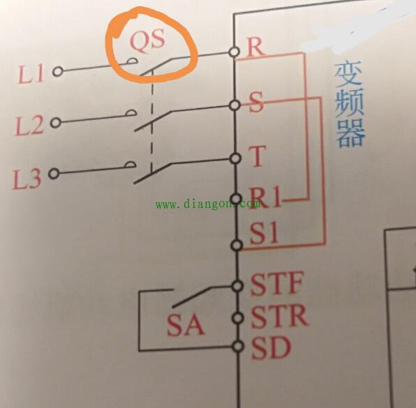 所以,在看变频器R1S1的不同接线方式或看是用KM还是QS控制,就可以大概判断变频器控制供给电源属于那种电路控制类型,为接下来的维修排查电路提供便捷!