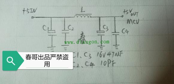 于是笔者着手检查主板+5V电源线路,图示便是该部分电路。由于变频器主板对电源的纯净度要求很高,故该机主板部分又对来自开关电源+5V电源采取了LC π型滤波电路。考虑到电感元件损坏几率不大,笔者便着重针对图中四支电容展开检测。功夫不负有心人,一番折腾后笔者发现C3电解电容存在劣化变质现象(内部电解质干涸失容,内阻不稳)!将其更换开机测试,变频器恢复正常。至此该起让笔者及其他同行难受不已的,间歇性故障得以排除!