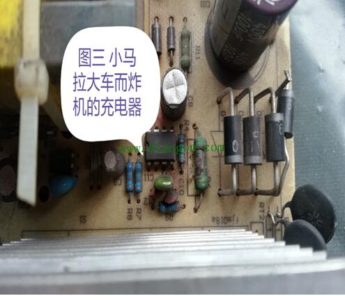 二、过载因素同样是诱发电子设备发生短路故障的主要原因之一。图三便是由于“小马拉大车”而炸毁的充电器!