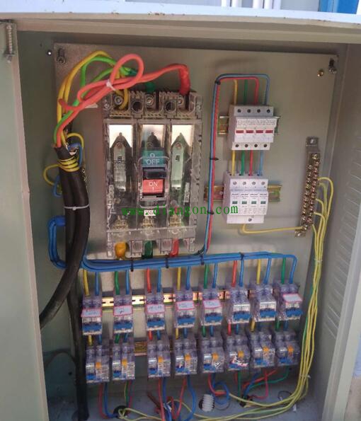 项目职工之家处的集装箱房出现中午空调启动不起来,但是到了晚上却可以正常工作。由于是之前是两排集装箱房,由于现场作业面较少,用不了那么多人员,箱房空置率太高,造成浪费。总包拆除了一排,留了一排整合了人员。造成这排房子用电负荷增大。这是个3P断路器零线地线各有一安装排,开关下端均匀的分布着2P的开关另外此开关下接着2P的漏保。原本这个电箱处用的是3*6平方的rv线,3P开关的另外两个端子用线连起来。相当于3p当2P开关用。用钳形表测其电流正常,也就没再测电压,考虑到房子都是用两根2.5平方的bv线带起10个房间的空调,线不够粗,加上现场没有2.5以上的线,只有把电线断开三个房间用一路电线,又另外增加了两路的电线带另外的几个房间。另外又在电源侧增加了一根3*10rv的电线。想着这回问题解决了,谁知道到了晚上还是出现空调不启动的现象,我拿着万用表测其电流在62A,但是测其电压却只有185V,没办法只好把两根电线从新组合一下,两根电线当一根用,并且把开关处的电线拆除,重新恢复成3P的断路器,再次测量电压230V,电流36A.至此问题解决。