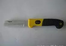 2.电工刀:电工刀是用来剖削或切割电工器材的常用工具,在使用电工刀时,应将刀口朝外进行操作,使用完毕要随即把刀身折入刀柄内,以免刀刃受损或割破皮肤。