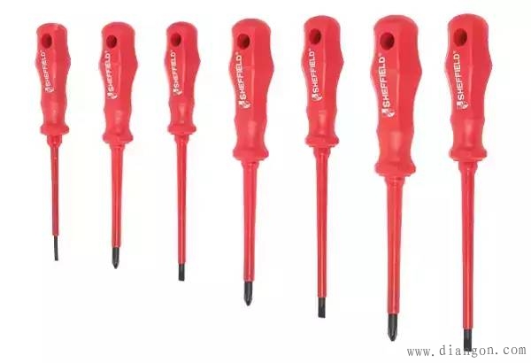 绝缘螺丝刀带电作业时,手不可触及螺丝刀的金属杆,以免发生触电事故.作为电工,不应使用金属杆直通握柄顶部的螺丝刀,为防止金属杆触到人体或邻近带电体,金属杆应套上绝缘管。