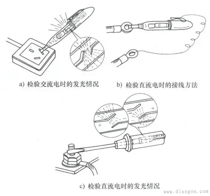 图 用低压验电笔区分交直流和判断直流电的正负极