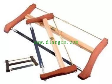 ①框锯在使用前先将旋钮把锯条角度调整好,一般应与木架的平面成45°,用铰片将绷绳绞紧,使锯条绷直拉紧;开锯路时,右手紧握锯把,左手按在起始处,轻轻推拉几下,用力不要过大;锯割时不要左右歪扭,送锯时要重,提锯时要轻,推拉的节奏要均匀;快割锯完时应将被锯下的部分用手拿稳。用后要放松锯条,并挂在牢固的位置上。