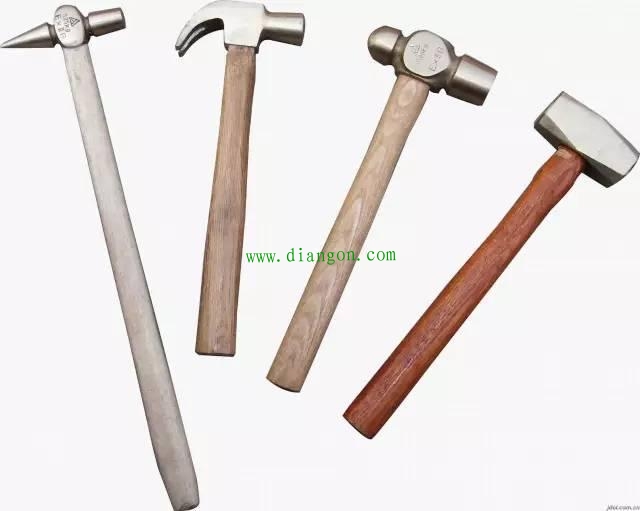 锤子是主要的击打工具,由锤头和锤柄组成,锤头材质多为45号钢。根据被击打工件的不同,锤头也有用铅、铜、橡皮、塑料或木材等制成的软锤子。锤子的重量应与工件、材料和作用为相适应,太重和过轻都会不安全。所以,为了安全,使用锤子时,必须正确选用锤子和掌握击打时的速度。