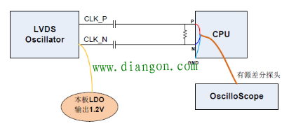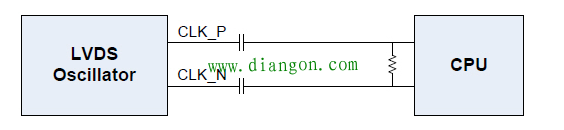 先是原理分析,初步结论是:硬件原理设计上不存在太多的问题。这是一个LVDS时钟晶振发出差分LVDS 时钟后,通过交流耦合连到CPU侧(图)。