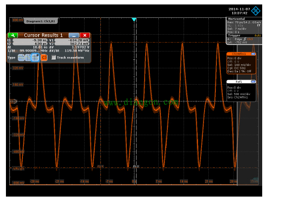 2014年7月份,我们启动了电能质量高端设备开发项目。这个项目的技术需求是采样点多,数据率高,算法复杂,数据存储量大,网络接口多,高级应用多等。面临这样的情况,我们通过大量分析和评估,决定新构建硬件平台来满足产品需求。通过对多家处理器进行分析? 比对,最终一个全新的硬件架构出炉了:以双核CPU配上FPGA,Switch,DOM盘等来实现数据获取,传输,计算,存储,通信等功能。经过一番努力,很快我们的板卡打样回板,并完成了SMT,正式进入软硬件调试阶段。在完成小系统(CPU,DDR,Flash等)主要器件测试后,我们进入小系统外围器件的开发环节,在做SATA-DOM盘测试时,发现了DOM盘无法连接的问题。在软件工程师的配合测试下,很快定位出是差分晶振输出给CPU的差分LVDS参考时钟未能稳定锁定,导致控制器无法正常工作。在公司内部寻找测试高速信号的示波器,发现基本都是带宽很低的示波器,且不配有有源差分探头,根本无法看到波形,从而无法判断是原理设计问题,还是PCB,或器件焊接及其它问题,项目就此卡住了。接下来就是一顿满地找能用的示波器过程了,那个汗啊!
