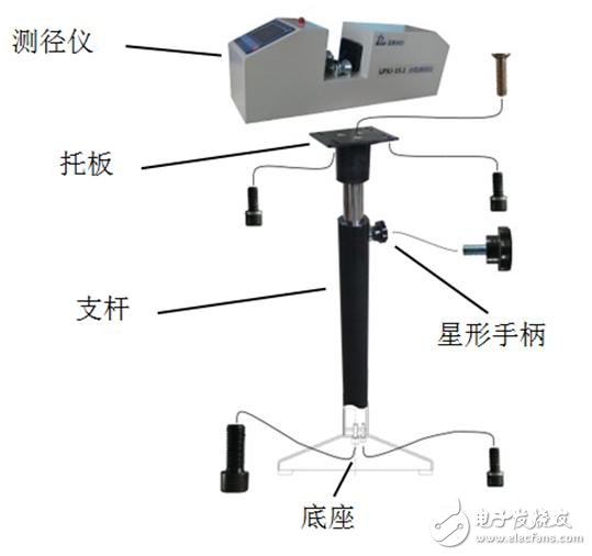 3) 分别连接底座和支杆、支杆和托板、测径仪和托板;