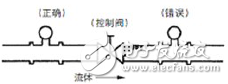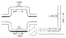 测量液体时为保证测量,涡街流量计的 管道必须充满液体。涡街流量计安装在水平管道上时,应将下游段的管道高于涡街流量计,以保持满管;当流体向下流动时,应将下游段的管道高于涡街流量计,以 保持满管。流量计安装在垂直管道上时,流体应该向上流动,当流体向下流动时,应将下游段的管道高于涡街流量计,以保持满管,如图3所示。