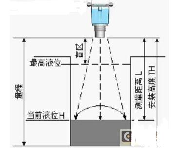仪表量程指仪表能够测量的距离,安装高度TH应小于量程。
