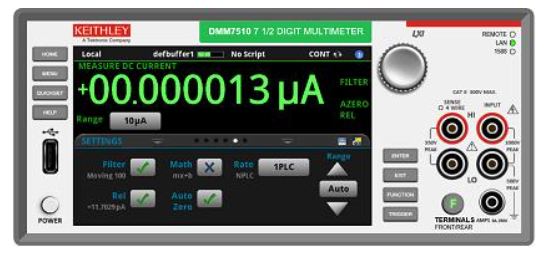 台式DMM拥有所有这些功能,提供了5½位到8 ½位的分辨率,远高于手持式DMM典型的3½位到4½位分辨率。台式DMM的灵敏度最低可达100nV、0.1µΩ和1pA,相比之下,高端手持式DMM的灵敏度则为10µV、0.1Ω和0.01µA。优秀的手持式DMM的DCV准确度是0.05%,而台式DMM可以实现0.0025% DCV及更好的准确度。
