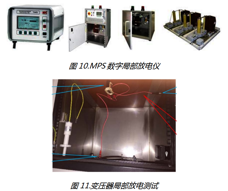 局部放电测试通过的判定标准是在第二段1.5UPD电压施加期间的视在放电电荷不超过10pC,如果超过10pC即判定为不合格。回到前述的三相变频器中,需要通过局部放电测试的器件之一就是变压器T1了。图10是MPS研发的数字局部放电仪,图11是变压器的局部放电测试场景。