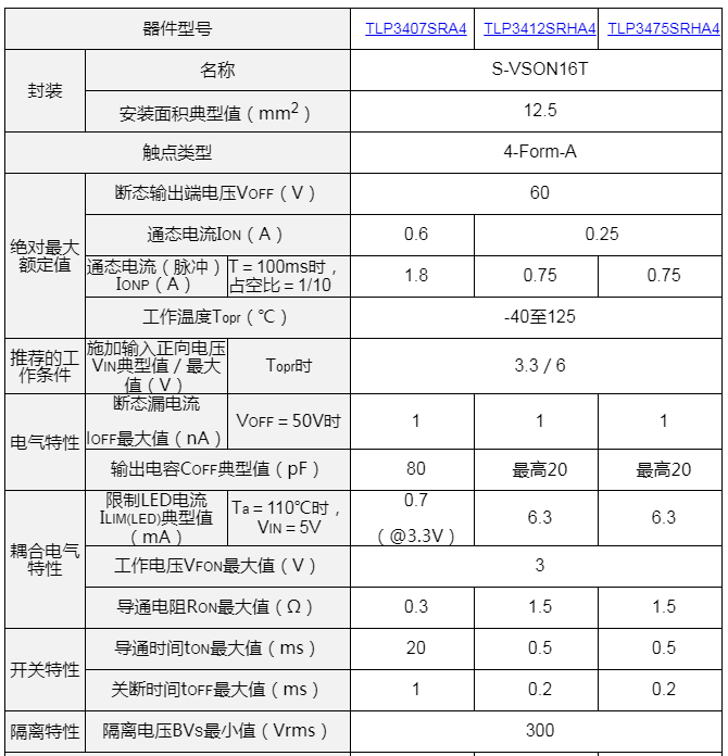 中国上海,2021年12月16日——东芝电子元件及存储装置株式会社(“东芝”)今日宣布,推出三款采用业界最小封装类型之一[1]的4-Form-A电压驱动光继电器---“TLP3407SRA4”、“TLP3412SRHA4”与“TLP3475SRHA4”,这三款器件于今日开始支持批量出货。