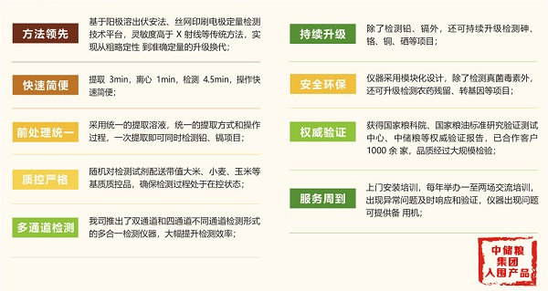 南京微生物基于领先的电化学快速检测技术平台,推出了重金属快速检测仪及配套的检测电极,可快速定量测定粮食谷物、蔬菜水果、鱼虾水产、中药材、饲料等样品中多种重金属的含量,操作快速简便,结果准确可靠,与国标法高度符合,适用于各类加工企业、第三方检测机构及政府相关监管部门。