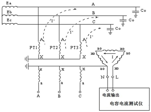 电容电流测试仪是从PT 开口三角侧来测量系统的电容电流的。其测量原理如图1所示。