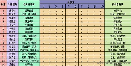 (3)人格测试:人格因素分析,如卡特尔16因素分析量表(如图4)和行为程度评估等。