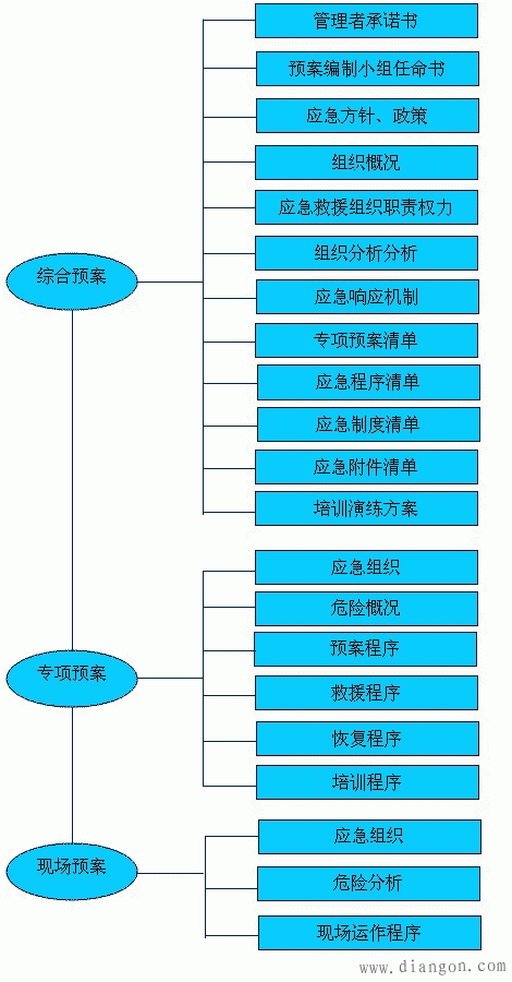 基于可能发生的事故或面临的灾害,为保证各种类型预案之间的整体协调以及实现共性与个性的结合,可将应急救援预案分为三个层次: