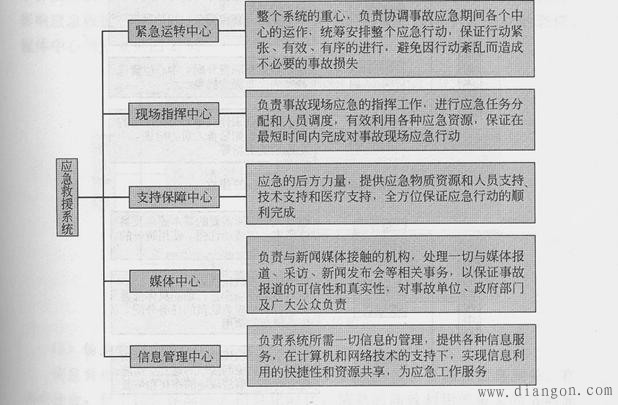 建立坚强有力的应急组织是落实应急救援预案,实施应急管理的关键。健全的应急组织应包括应急管理小组、专业和资源救护队伍、应急专家咨询系统、医疗以及后勤、保卫等其他必要的机构。